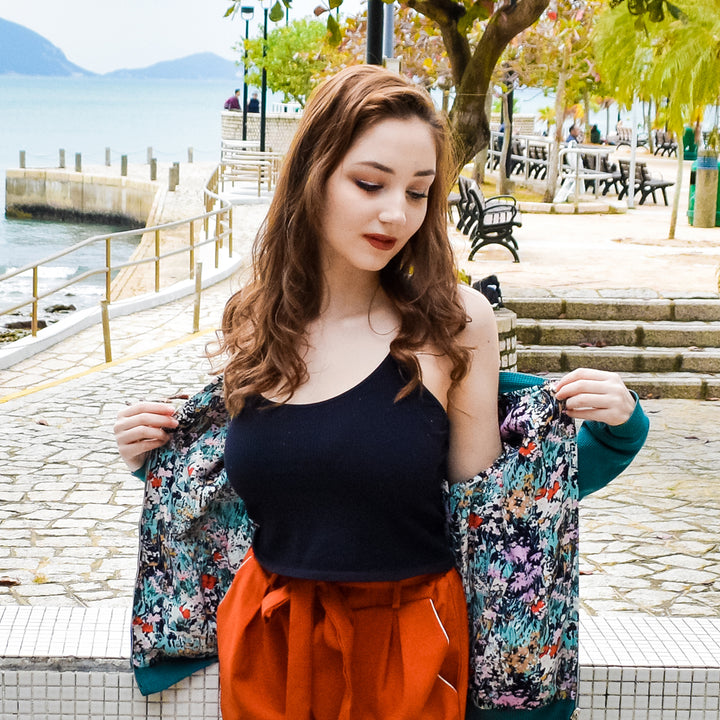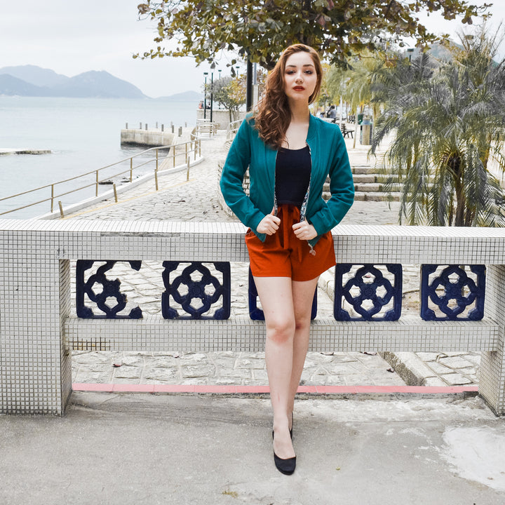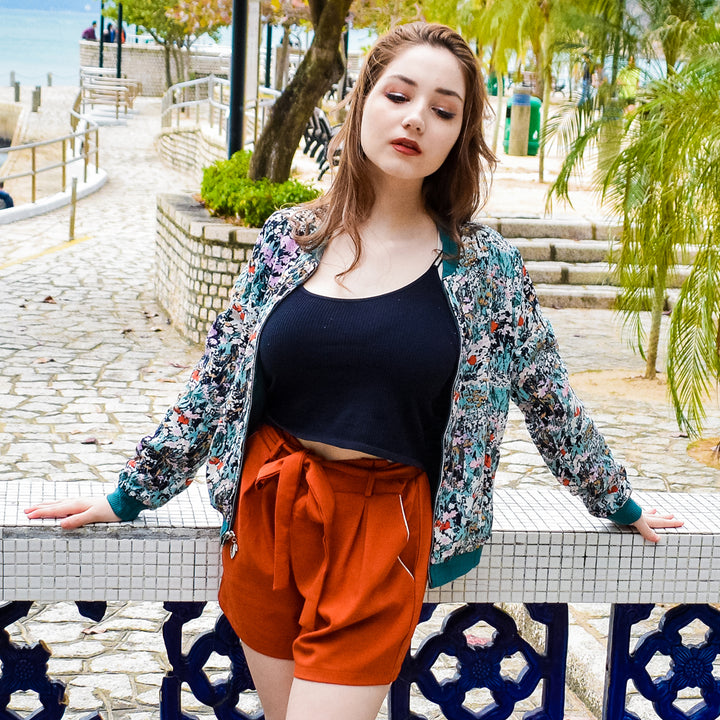 Ride the fanatic fashion rollercoaster with this rapturously divine bomber jacket in a vibrant shade of teal. The cool tones of this striking winter apparel guarantee an ideal addition to your wardrobe.