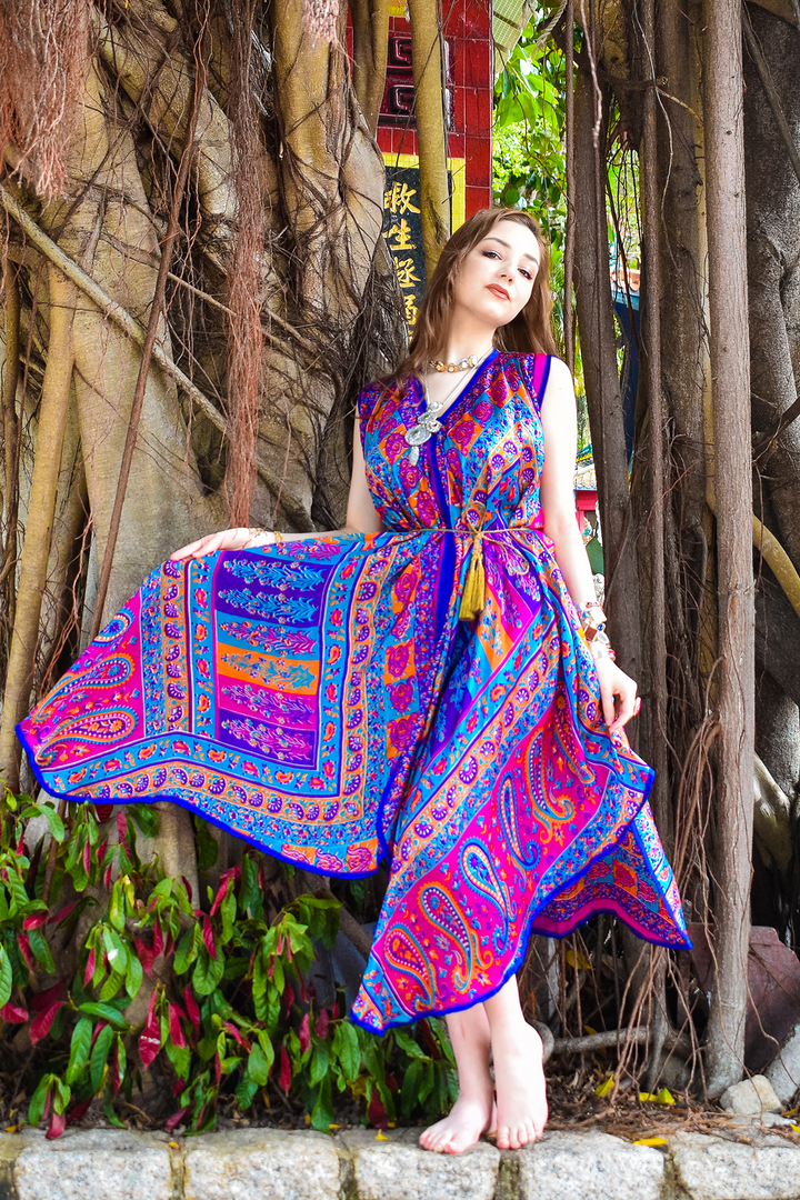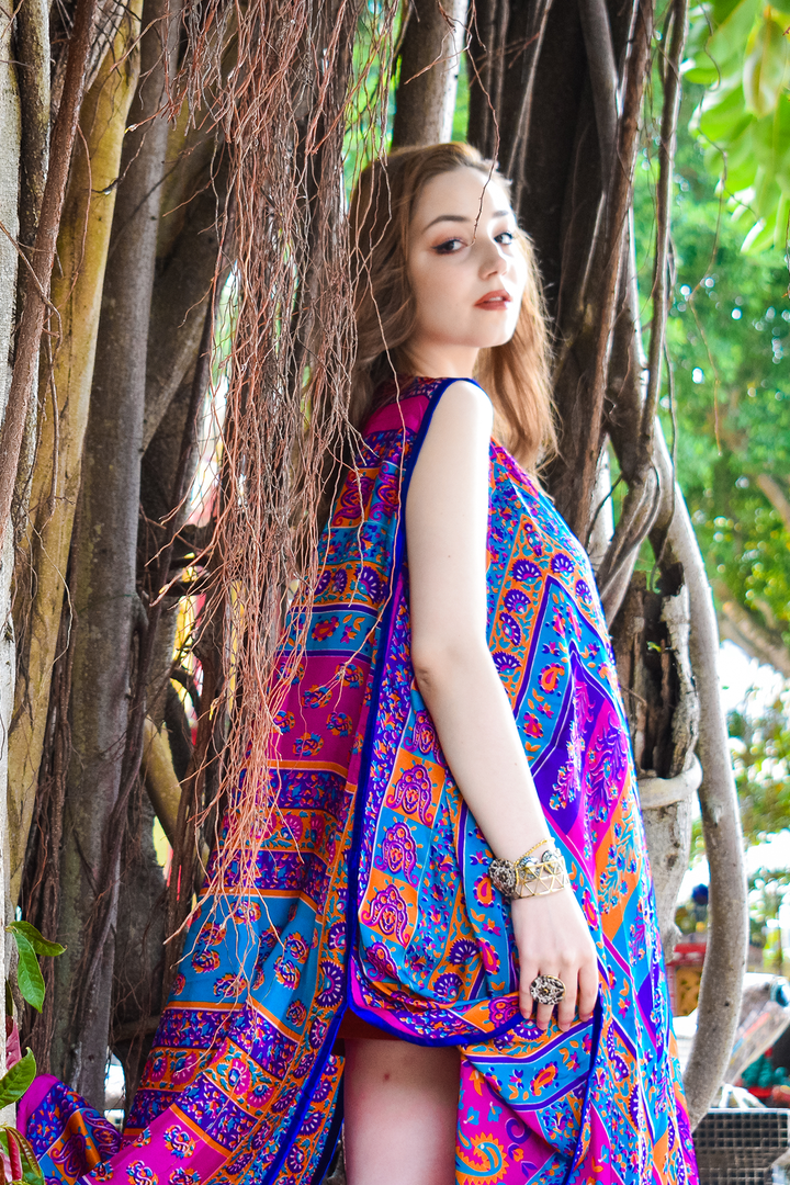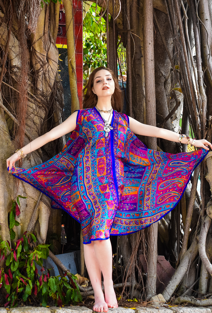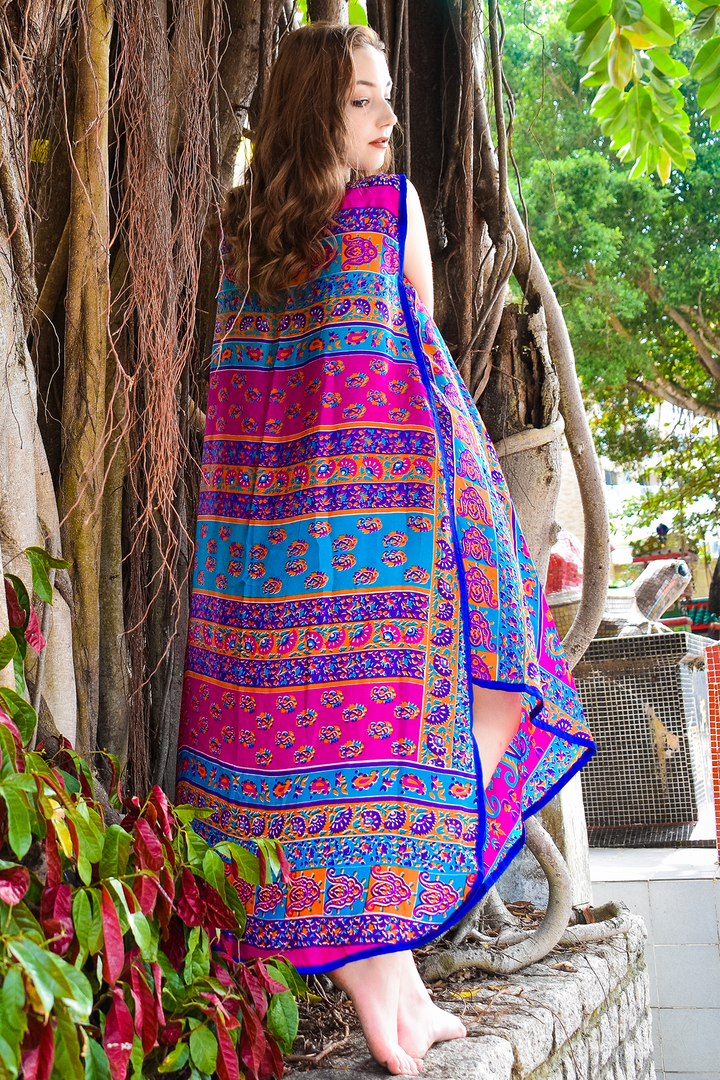 Substantiate a fashion statement with this stunning Kaftan evincing intricate patterns in blended shades of fuchsia and turquoise. The ideally oriental design of this attire adds spunk to your wardrobe and elegance to your outlook.