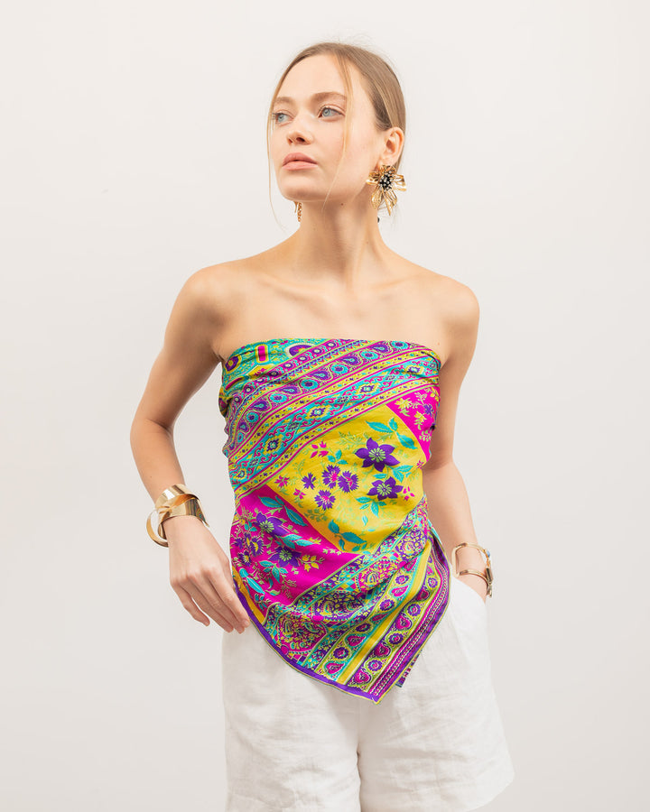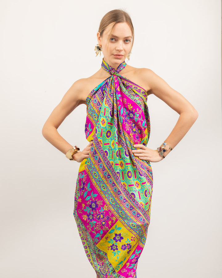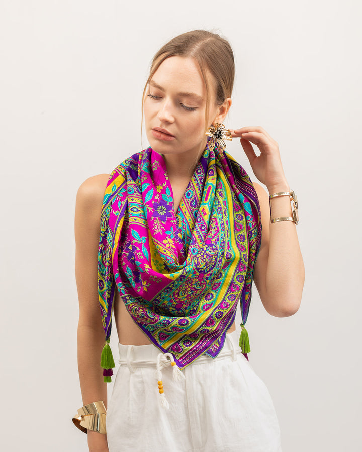 Leave an enchanting remark with this sleek and stunning scarf articulating an impeccable vogue design. The spell of floral details on the sumptuous silk of this sterling clothing piece shuns a staggering outlook.