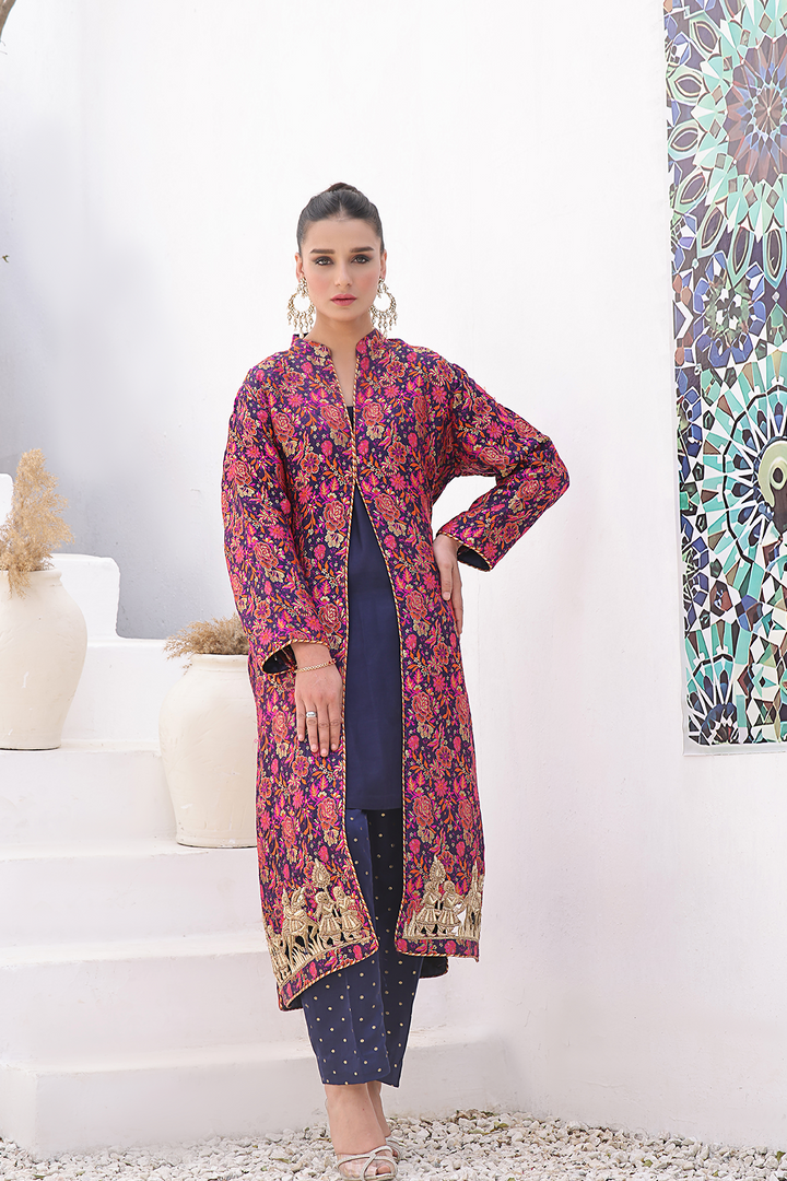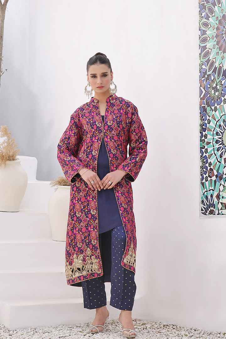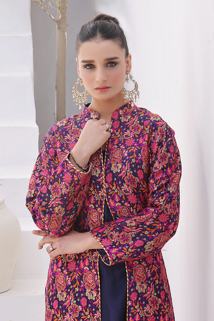 Add a touch of modern ethereal charm to your festive wardrobe with this enchanting 3-piece Sherwani ensemble. Featuring a tailored trouser, a graceful inner, and a long-length fusion Pure Handwoven Kamkhwaab Sherwani with dori piping finishing at hem and openings, this ensemble exudes elegance and sophistication.