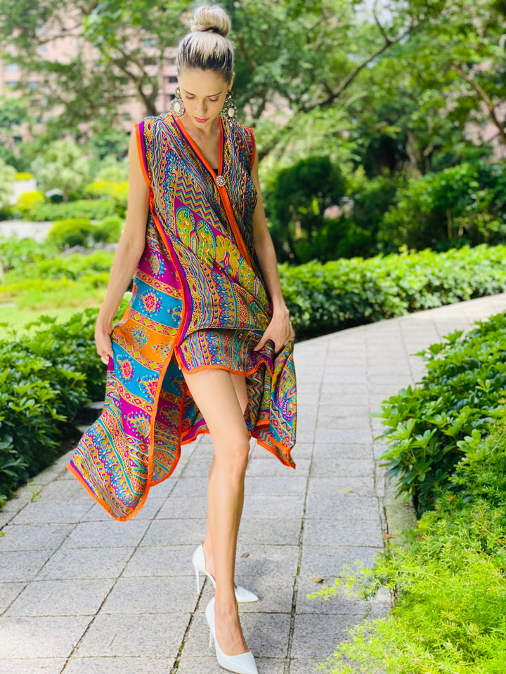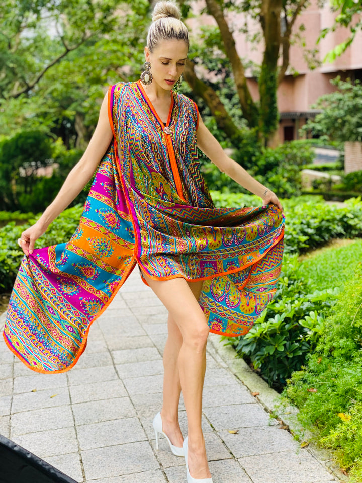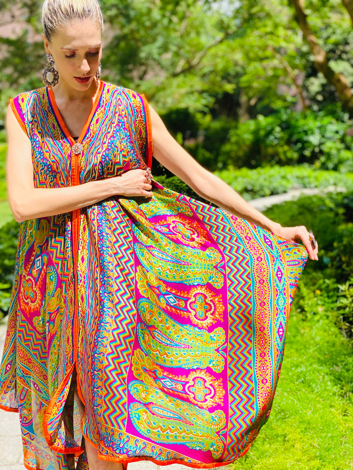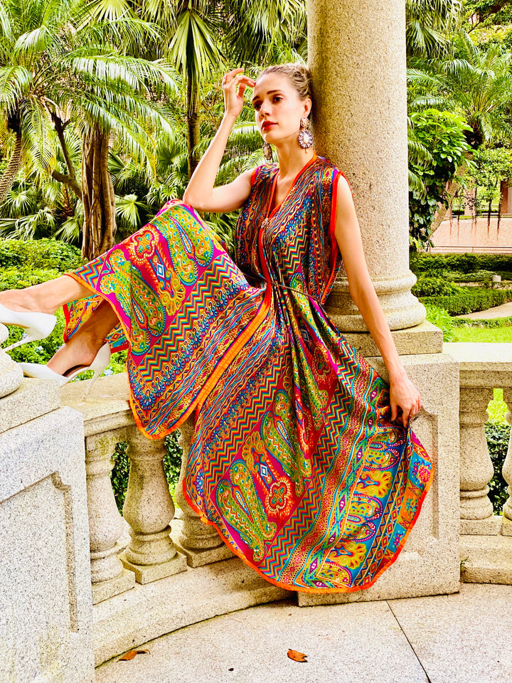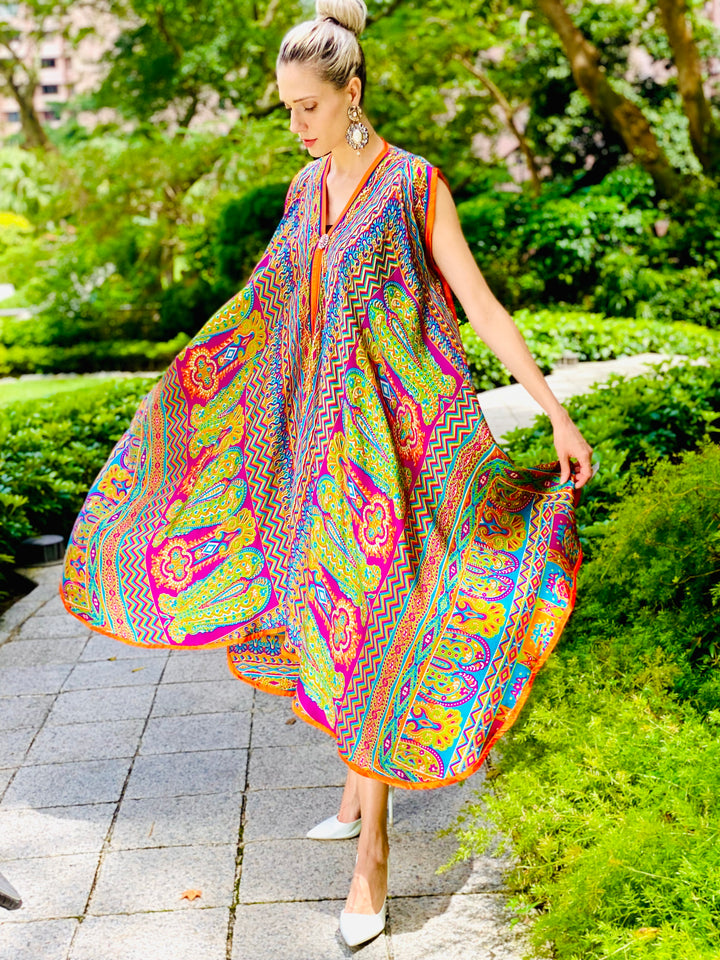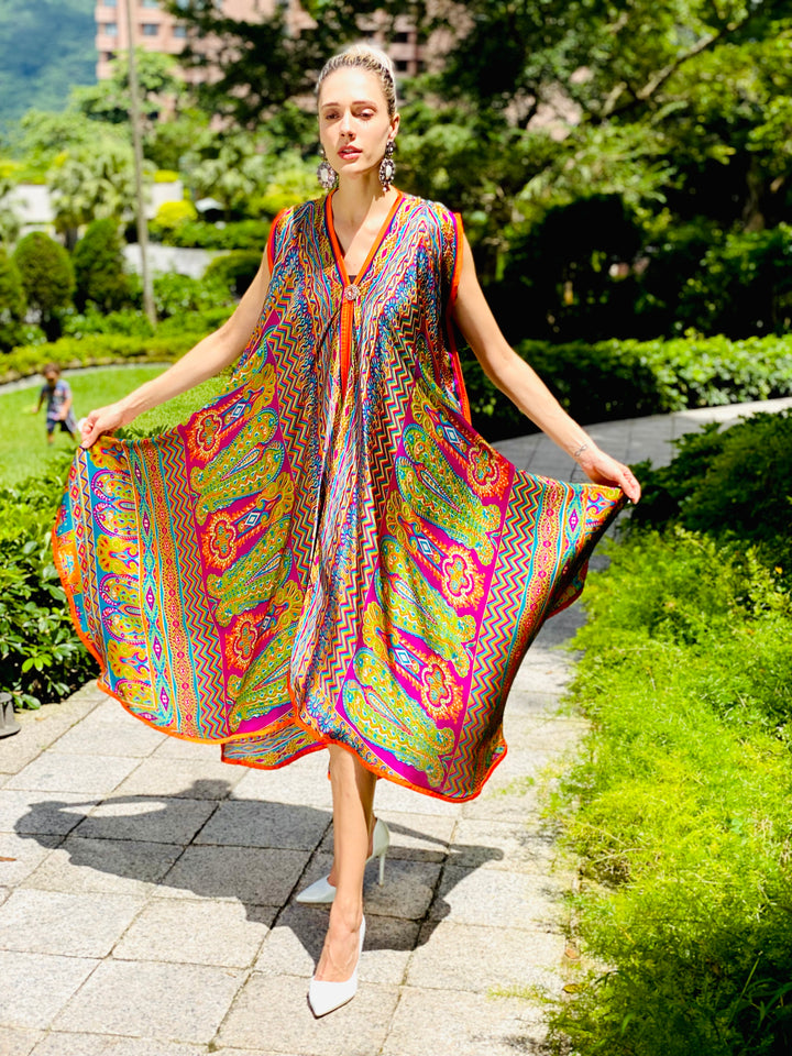 The depth of lively hues expressed and evident in this ravishing Reese kaftan confess and concede a euphoric fairytale landscape. It's an ode to classic mysticism and fantasy!