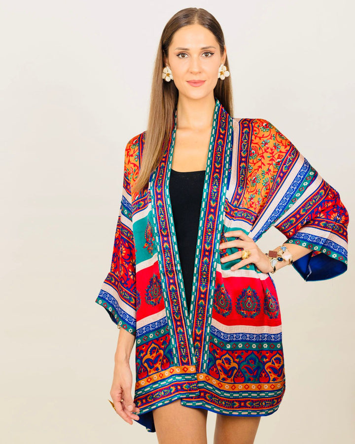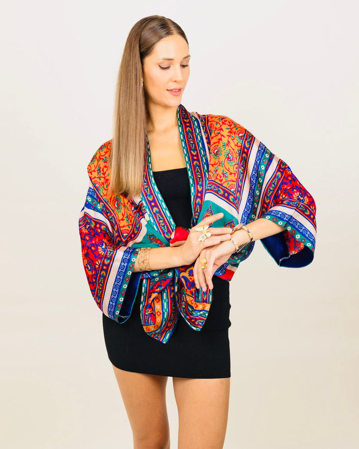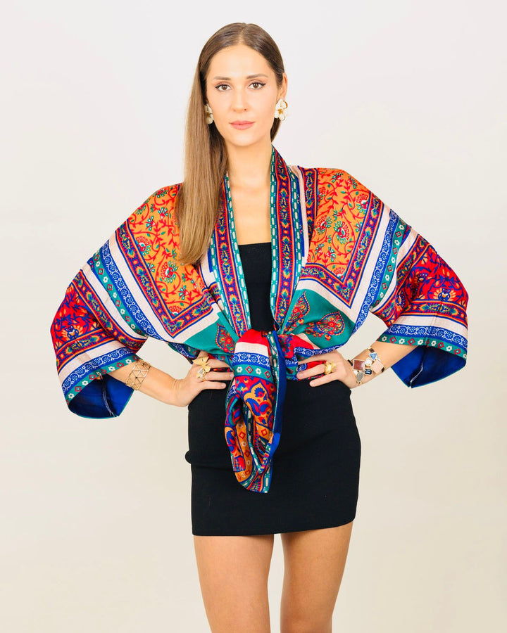 The Renate Kimono embodies heritage poetry syncopated by pop and punk rhythms. Traditional elegance syncs with audacious rebellion, a lyrical composition that celebrates cultural continuity in the symphony of modernity.