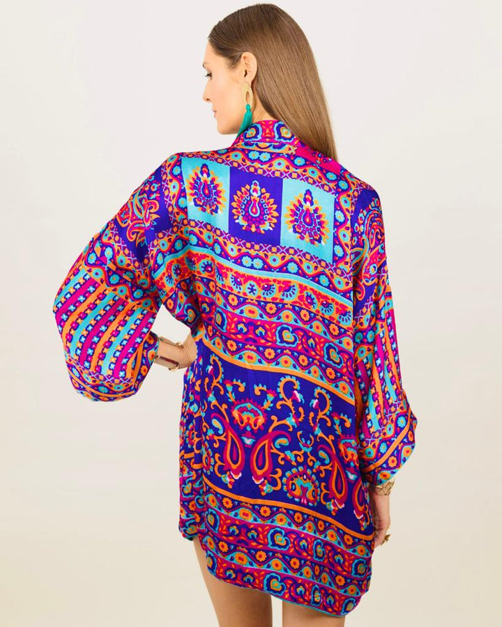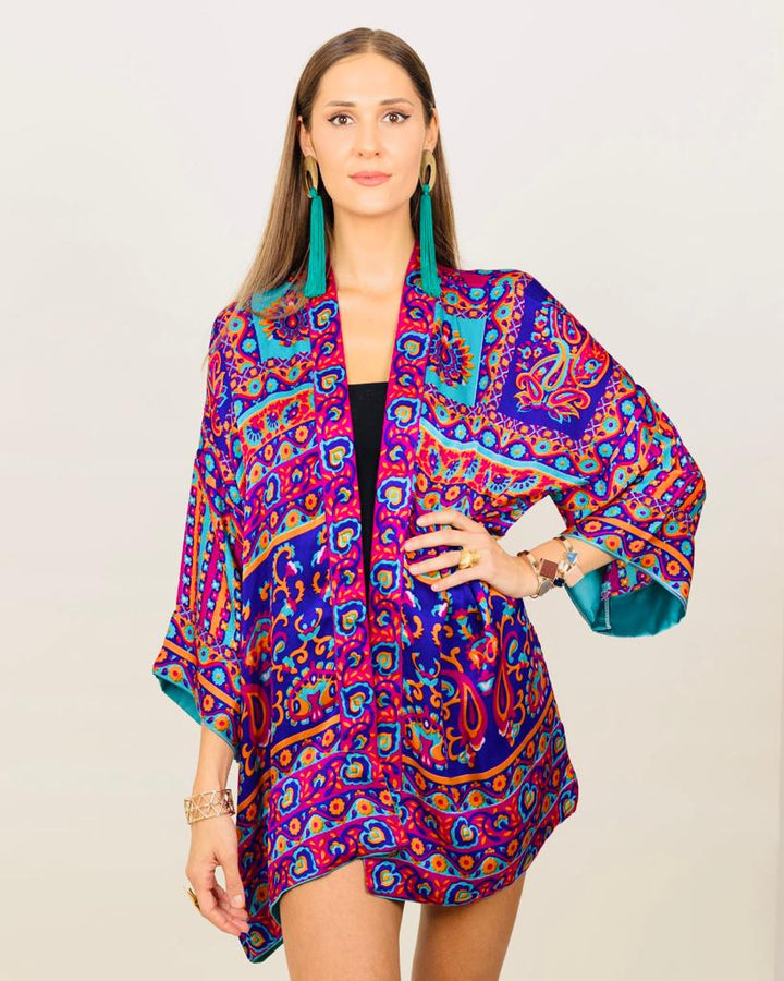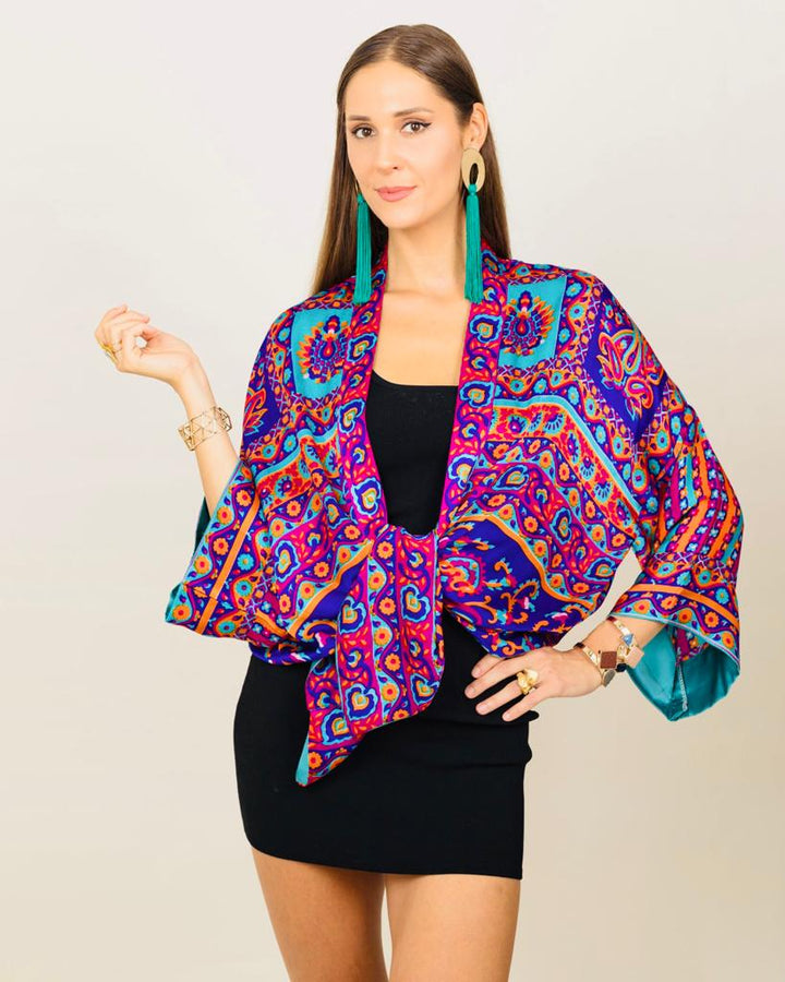 Embark on a journey where ancient tales swirl in kaleidoscopic threads, creating the Zelda Kimono that marries the enigmatic allure of folklore with rebellious punk aesthetics. Traditional motifs intertwine with metallic studs, a juxtaposition where cultural resonance meets audacious defiance.